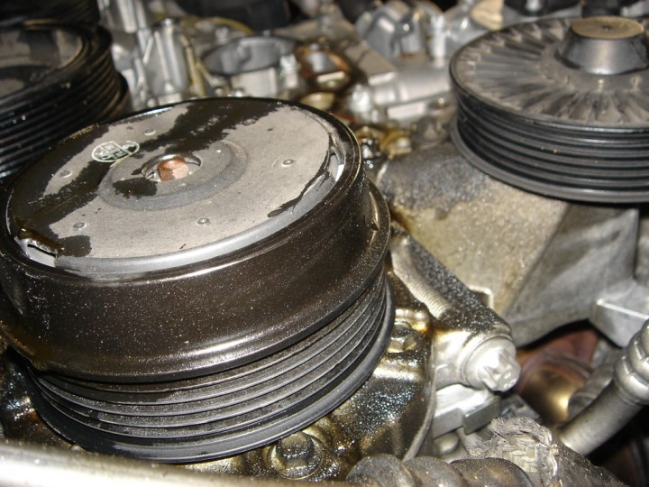 上から漏れてきている 早く直さないと オイルで補記類が壊れてしまう