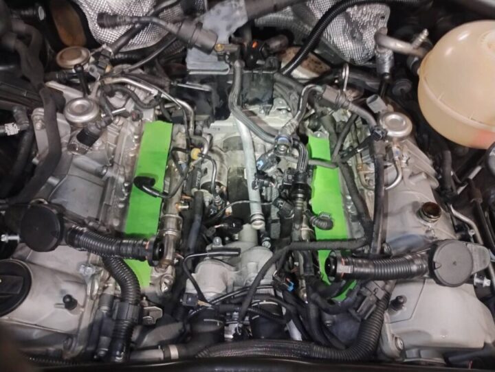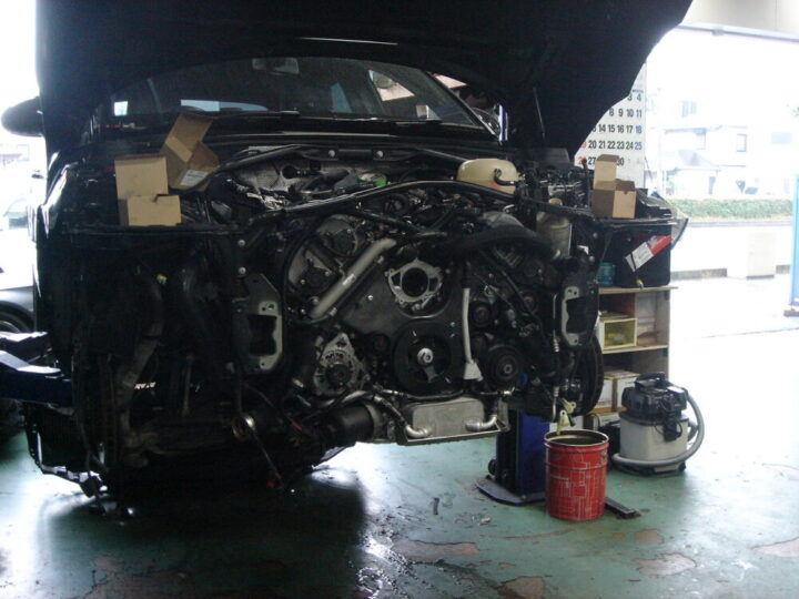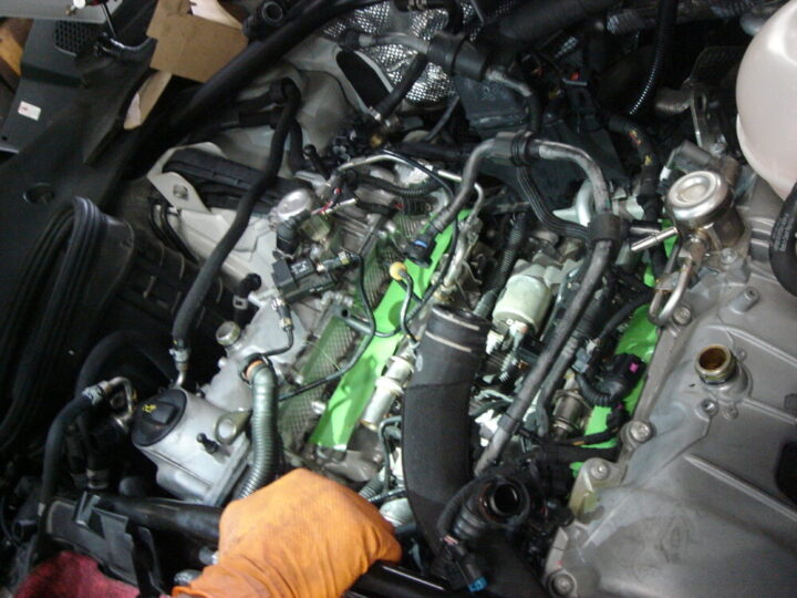 ウオーターポンプは エンジン上部のインテークマニホールドを外しての交換です