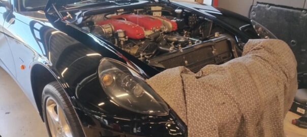 窓枠のメッキ ピラーのメッキ モールのメッキにブラック塗装をしていました
